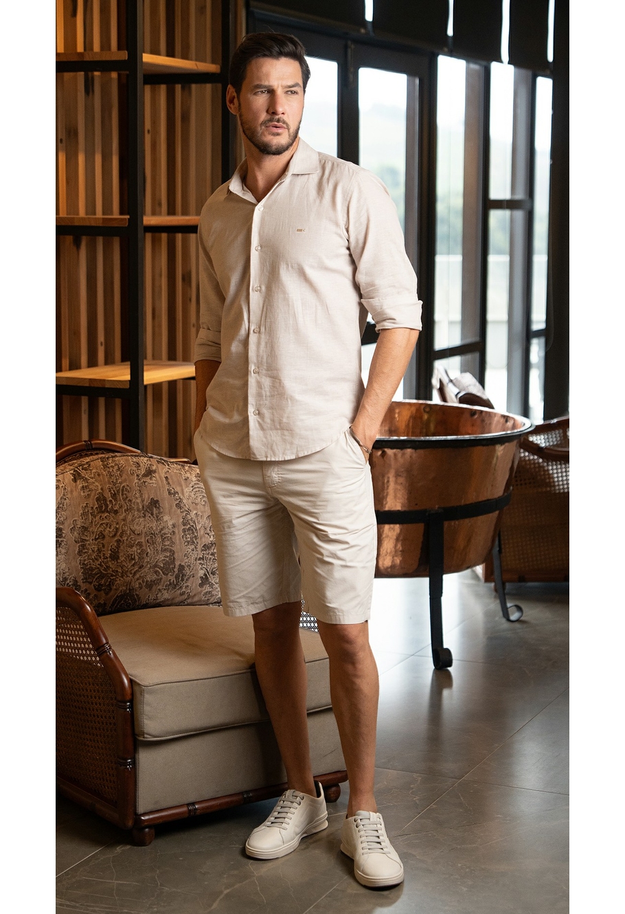 BERMUDA TINGIDA BOLSO FACA REGULAR